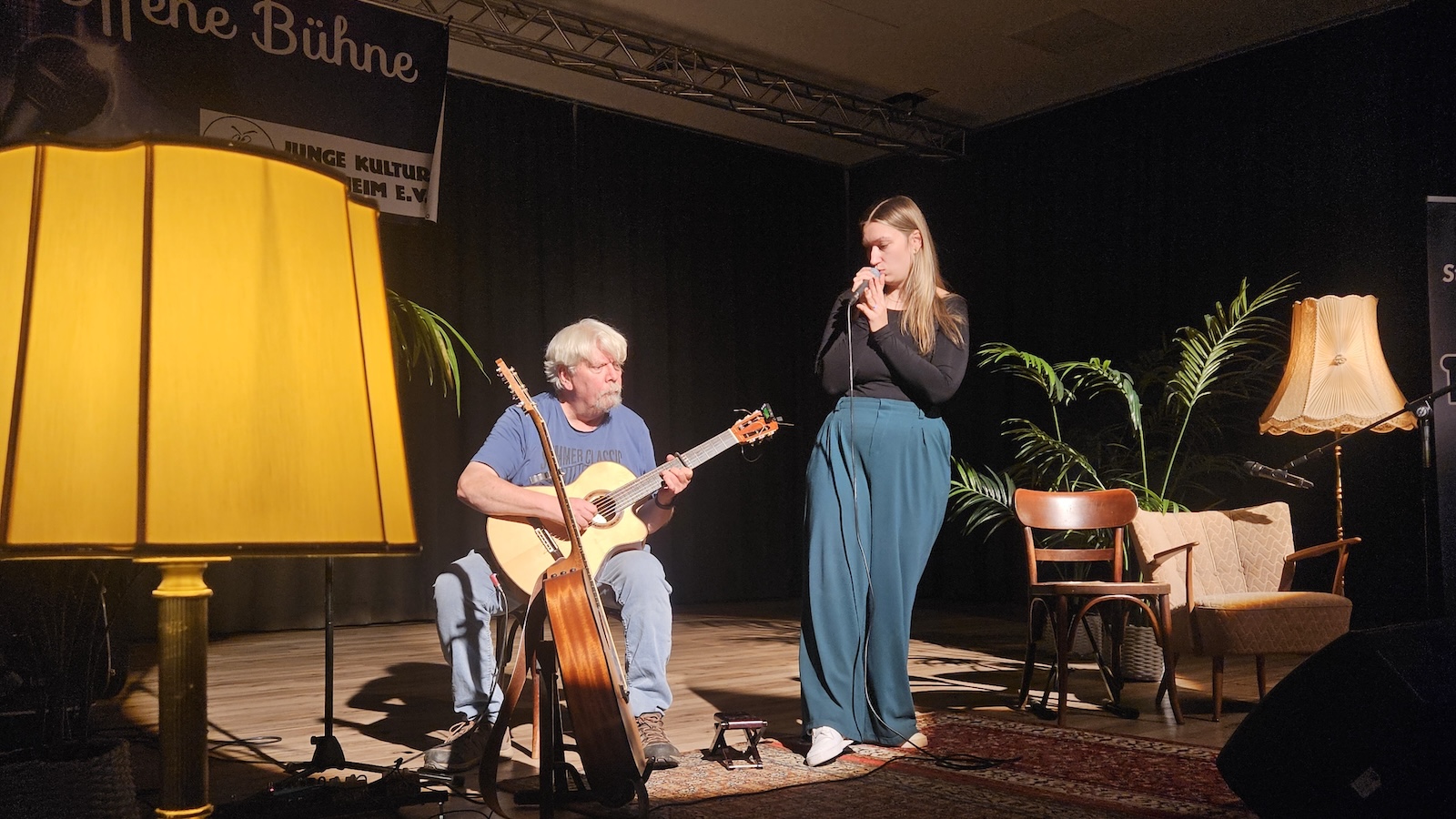 Das Duo Deborah und Peter aus Hamburg und Bad Salzuflen überzeugte mit gefühlvollen Songs. Peter Teuteberg, mittlerweile im Ruhestand, begleitete seine zukünftige Schwiegertochter Deborah auf der Akustikgitarre. Ihre gemeinsame Freude am Musizieren war deutlich zu spüren – und sprang auf das Publikum über.