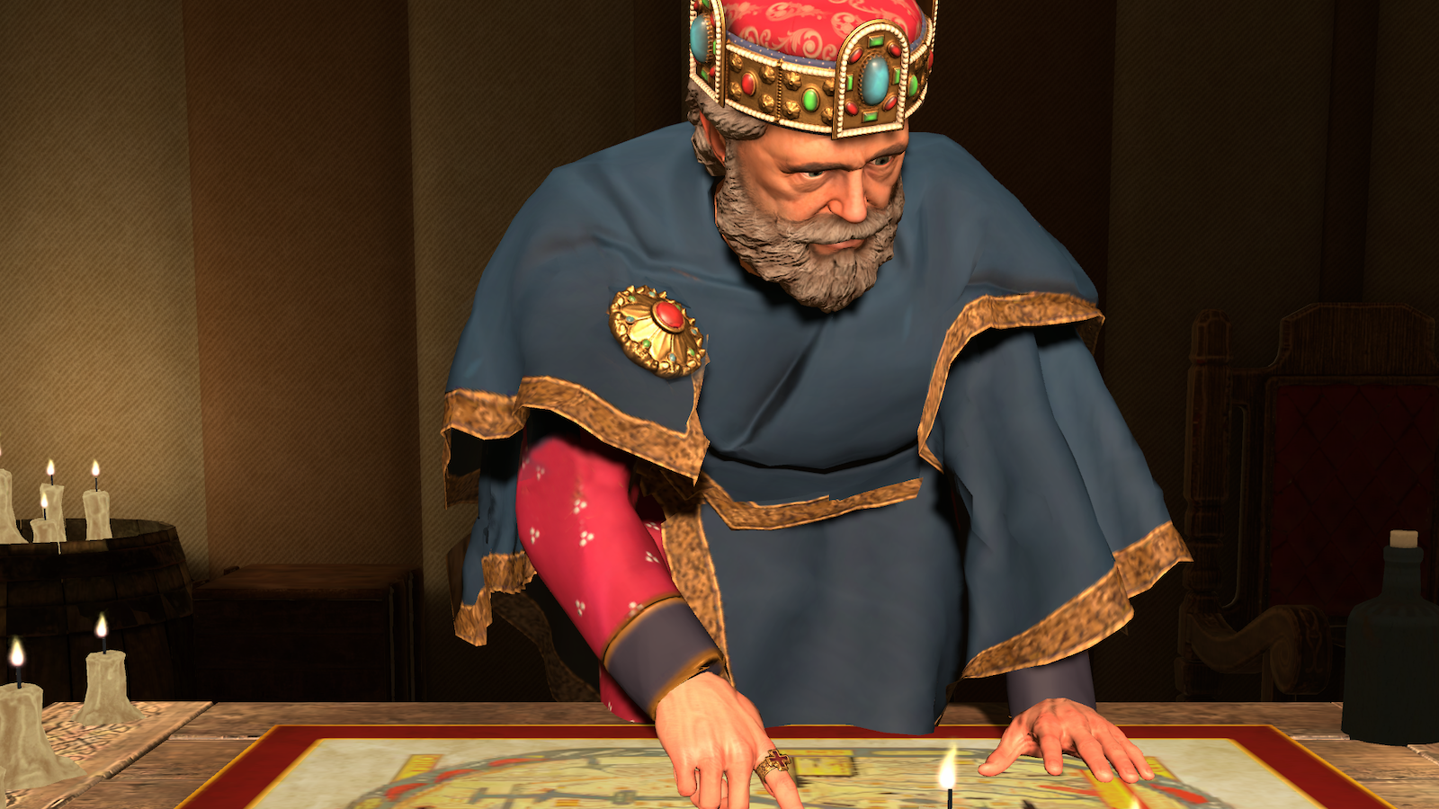 Die Besucher setzen eine VR-Brille auf und schon stehen sie im von Kerzen sanft erleuchteten Zelt des Frankenkönigs. Karl empfängt seine Gäste gebeugt über einen Tisch, auf dem Bilder passend zu den besprochenen Themen eingeblendet werden. Der spätere Kaiser ist prächtig gewandet und trägt seine Krone. Er begrüßt die Besucher mit den Worten: „Friede sei mit dir, der du mein Zelt betrittst. Ich bin Karl, Sohn Pippins, König durch Gottes Gnade.“