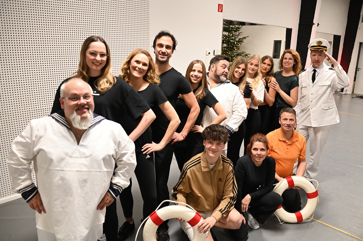 Höxter/Beverungen (TKu). Die neue Schlosstheater-Musikrevue befindet sich auf Rekordkurs. Die Nachfrage ist enorm gut! Mit „Kreuz & Quer – Liegst Du noch oder schwankst Du schon?“ bringt das Schlosstheater Fürstenberg ab dem 28. Februar 2026 ihre neue Musikrevue auf die Bühne in der Residenz Stadthalle in Höxter. Nach dem großen Erfolg von „Never forget – …und am Ende die Jahrtausendwende“ legt das Ensemble um die Schlosstheater-Leiterin Bärbel Mihm nun nach und das mit „voller Kraft voraus!“. Bis zum 29. März 2026 sind insgesamt 15 Vorstellungen geplant. Bereits seit Mitte September wird in der Beverunger Tanzfabrik geprobt und das aktuell sogar zweimal pro Woche intensiv. Das Ensemble, bestehend aus 15 Akteuren, darunter acht Frauen und sieben Männern, studiert das zum Teil selbst geschriebene Programm ein, das die Zuschauer mit Musik, tänzerischer Präzision, Humor und tollem Bühnenoutfit mitreißen soll. „Alles wird natürlich wie immer live gesungen“, betont Bärbel Mihm. Auf der Bühne entsteht dabei eine maritime Welt: Das Bühnenbild soll einem Schiff nachempfunden sein, unterstützt von einer ausgefeilten Lichtgestaltung.